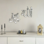 Tableau Islamique Métallique “الله, محمد ﷺ ” – Élégance & Spiritualité